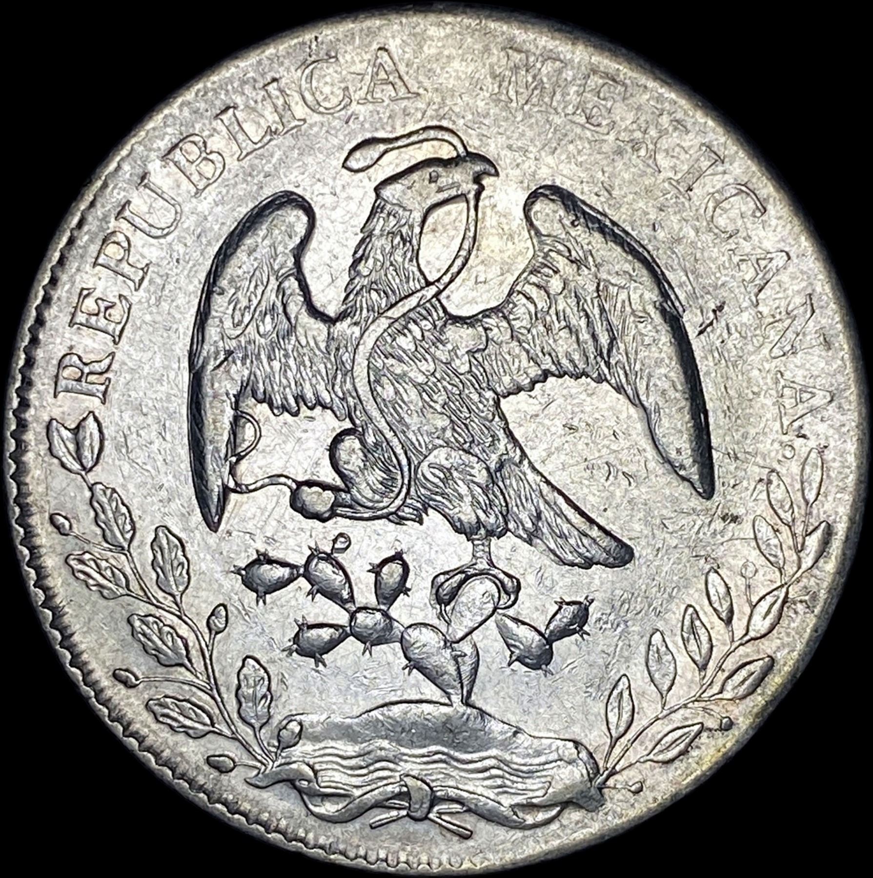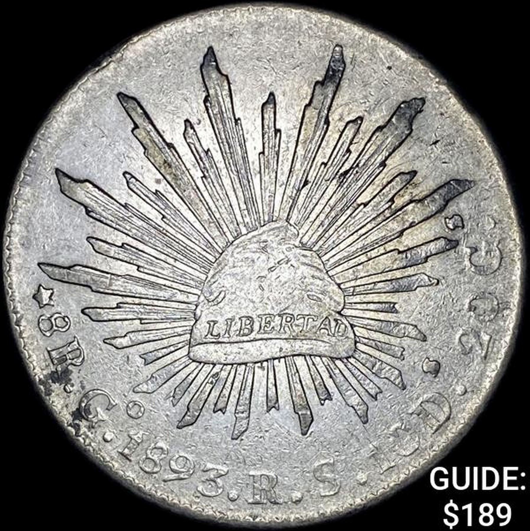 1893Go RS Mexico Silver 8 Reales Cap & Ray NEARLY UNCIRCULATED