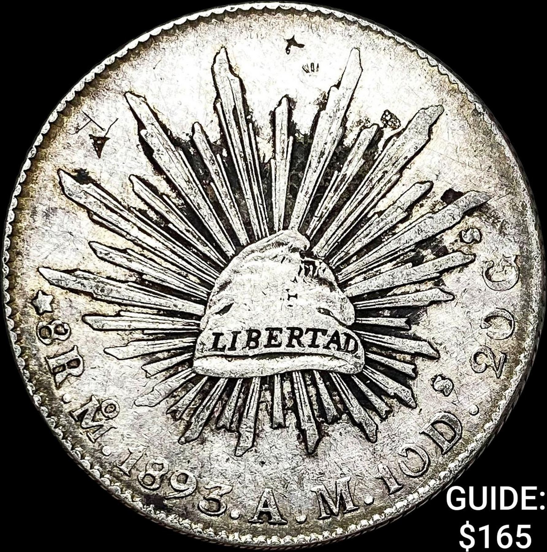 1893Mo AM Mexico Silver 8 Reales Cap & Ray CLOSELY UNCIRCULATED