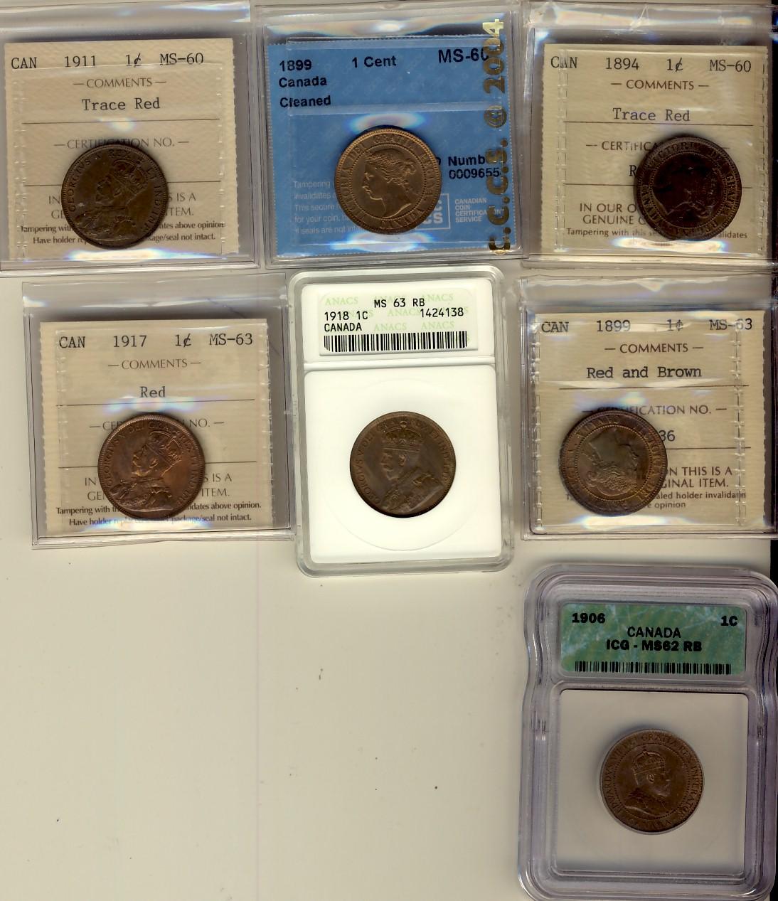 1894 1¢ , 1899, 1911 MS60, 1899, 1918 MS63RB, 1917 MS63RD & 1906 ICG MS62RB. Lot of 7 certified coi