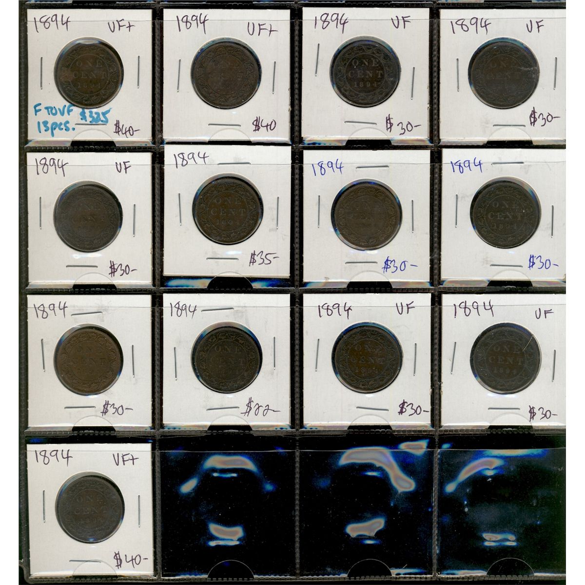 1894 1¢ F/VF grades. Lot of 13 pcs.