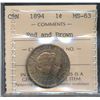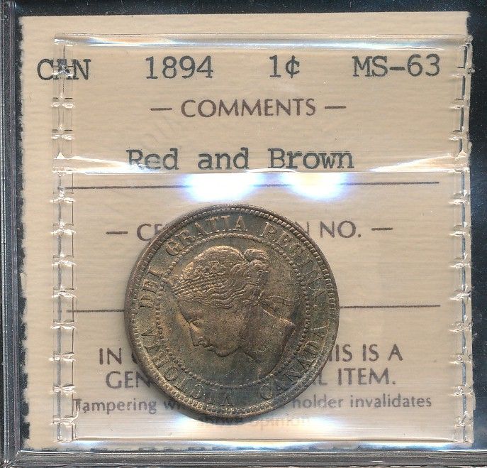 1894 1¢ ICCS MS63RB. Attractive and lustrous issue.