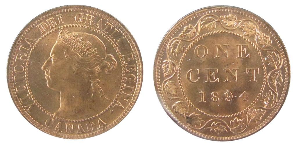 1894 1¢ ICCS MS65RD. Flashy 100% red and lustrous.