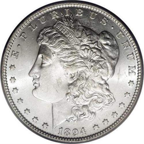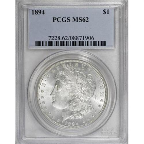 <B>1894 $1 MS62 PCGS.</B></I> With the exception of the proof-only 1895, the 1894 is the lowest mintage Philadelphia issue. The majority of survivors grade VF-AU, and Mint State examples are desirable. The present untoned piece has unbroken luster and a good strike. The reverse is well preserved, and the obverse is only lightly abraded for the grade.<BR><BR><B>Coin Engraver:</B> George T. Morgan<BR><BR><b>Shipping:</b> Coins & Currency (<a target="_blank" href="http://www.heritageauctions.com/common/shipping.php">view shipping information</a>)
