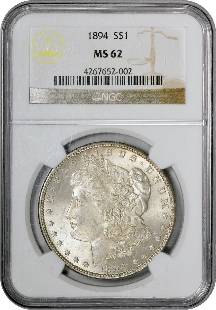 One 1894 $1 Morgan Silver Dollar Coin NGC MS62. NGC Certified.