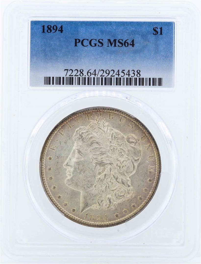 One 1894 $1 Morgan Silver Dollar Coin PCGS MS64. PCGS Graded.