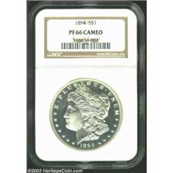 <TABLE cellSpacing=0 cellPadding=0 width="100%" bgColor=#000000 border=0><TBODY><TR><TD width="100%"><TABLE cellSpacing=1 cellPadding=3 width="100%" border=0><TBODY><TR><TD width="100%" bgColor=#79735c><FONT face=arial color=#ffffff size=3><B>Description</B> </FONT></TD></TR><TR><TD width="100%" bgColor=#ffffff><FONT face=arial size=2><B>1894 $1 PR66 Cameo NGC.</B></I> Brilliant and especially well mirrored in the fields, with eye catching contrast evident against the boldly defined central devices. The 1894 proof has traditionally commanded a premium over most proof Morgan Dollars because of the scarcity of business strike examples. Population: 10 in 66 Cameo, 10 finer (7/03). </FONT></TD></TR></TBODY></TABLE></TD></TR></TBODY></TABLE><BR><A name=PricesRealized></A><TABLE cellSpacing=0 cellPadding=0 width="100%" bgColor=#000000 border=0><TBODY><TR><TD width="100%"><TABLE cellSpacing=1 cellPadding=3 width="100%" border=0><TBODY><TR><TD width="100%" bgColor=#79735c><A name=PR><FONT face=arial color=#ffffff size=3><B>Previous Prices from Heritage Auctions</B> </FONT></A></TD></TR><TR><TD bgColor=#f6f6ed>No Prior Data Recorded </TD></TR><TR><TD bgColor=#ffffff><FONT face=arial size=1 ?>PLEASE NOTE: All prices realized reflect the final hammer price PLUS the buyer's premium in auctions that charge a buyer's premium. Each item has a notation at the top of the listing indicating whether that lot included a buyer's premium. Example: A item that sells with a final hammer price of $100 and a 20% buyer's premium will display with a price realized of $120. All information listed is intended to be as accurate as possible, but errors are possible. Please use this guide carefully and inform us of any inaccuracies. </FONT></TD></TR></TBODY></TABLE></TD></TR></TBODY></TABLE><BR><TABLE cellSpacing=0 cellPadding=0 width="100%" bgColor=#000000 border=0><TBODY><TR><TD width="100%"><TABLE cellSpacing=1 cellPadding=3 width="100%" border=0><TBODY><TR><TD width="100%" bgColor=#79735c colSpan=6><FONT face=arial color=#ffffff size=3><B>Price Guide*</B> </FONT></TD></TR><TR bgColor=#f6f6ed><TD align=middle><B>Grade</B> </TD><TD align=middle><B>Coin World<BR>(Trends)</B> </TD><TD align=middle><B>Numismedia<BR>Retail</B> </TD><TD align=middle><B>Numismedia<BR>Wholesale</B> </TD><TD align=middle><B>Coin<BR>Universe</B> </TD><TD align=middle><B>Heritage<BR>Value Index</B> </TD></TR><TR bgColor=#ffffff><TD align=middle>65</TD><TD align=right>---</TD><TD align=right>---</TD><TD align=right>---</TD><TD align=right>---</TD><TD align=right>$4,160.00</TD></TR><TR style="FONT-WEIGHT: bold" bgColor=#cccfdd><TD align=middle>66</TD><TD align=right>---</TD><TD align=right>---</TD><TD align=right>---</TD><TD align=right>---</TD><TD align=right>---</TD></TR><TR bgColor=#ffffff><TD align=middle>67</TD><TD align=right>---</TD><TD align=right>---</TD><TD align=right>---</TD><TD align=right>---</TD><TD align=right>---</TD></TR><TR bgColor=#ffffff><TD colSpan=6><FONT size=1>*All information listed is intended to be as accurate as possible, but errors are possible. No item may be returned or refused based on this information which is provided as a service to our customers. You should contact each pricing source directly to determine the accuracy of this information. </FONT></TD></TR></TBODY></TABLE></TD></TR></TBODY></TABLE><BR><TABLE cellSpacing=0 cellPadding=0 width="100%" bgColor=#000000 border=0><TBODY><TR><TD width="100%"><TABLE cellSpacing=1 cellPadding=3 width="100%" border=0><TBODY><TR><TD width="100%" bgColor=#79735c><FONT face=arial color=#ffffff size=3><B>Population Guide</B> </FONT></TD></TR><TR bgColor=#ffffff><TD align=middle><!-- Begin Output of Population Grid--><TABLE cellSpacing=0 cellPadding=0 width="100%" border=0><TBODY><TR><TD vAlign=center><TABLE cellSpacing=0 width="100%" border=1 cellsadding="3"><TBODY><TR><TD vAlign=center><TABLE cellSpacing=0 cellPadding=3 width="100%" border=1><TBODY><TR><TD vAlign=center align=middle bgColor=#f0f1e8 colSpan=2 <CENTER><FONT face=Arial size=2><B>PCGS Pop </B></FONT><CENTER></CENTER></TD><TD vAlign=center align=middle bgColor=#f0f1e8 colSpan=2><CENTER><FONT face=Arial size=2><B>NGC Pop</B></CENTER></FONT></TD></TR><TR><TD vAlign=center><FONT face=Arial size=2>(66)</FONT> </TD><TD vAlign=center align=right><FONT face=Arial size=2>1</FONT> </TD><TD vAlign=center><FONT face=Arial size=2>(66)</FONT> </TD><TD vAlign=center align=right><FONT face=Arial size=2>10</FONT> </TD></TR><TR><TD vAlign=center><FONT face=Arial size=2>(>66)</FONT> </TD><TD vAlign=center align=right><FONT face=Arial size=2>1</FONT> </TD><TD vAlign=center><FONT face=Arial size=2>(>66)</FONT> </TD><TD vAlign=center align=right><FONT face=Arial size=2>10</FONT> </TD></TR></TBODY></TABLE></TD></TR></TBODY></TABLE></TD></TR></TBODY></TABLE><!-- End Output of Population Grid--> Important notice: Heritage usually auctions material at the rate of 200-250 lots per hour. On some occasions eBay Live bid software or the Internet may not be able to keep up with the pace of the auction. We recommend placing a realistic absentee bid now as insurance to avoid disappointment. Occasionally the auctioneer may eliminate or reject an eBay Live bid, and the auctioneer may also reopen a lot after the close of the eBay live bidding (usually because we missed an audience bid), and may reject your bid even if it shows you as the winning bidder. By bidding via eBay Live, you agree that Heritage may award the lot to another bidder at its sole discretion under the circumstances described above or any other reasonable circumstances. Also please note that all Heritage lots purchased through eBay Live carry a 20% Buyer's Premium. Please make sure you read the Terms and Conditions before you bid.</TD></TR></TBODY></TABLE></TD></TR></TBODY></TABLE>