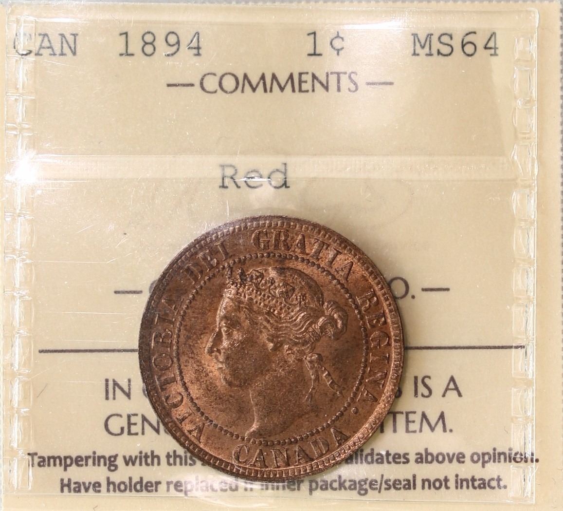 1894 1¢ "Thin 4" ICCS Choice Mint State-64. A very nice example.