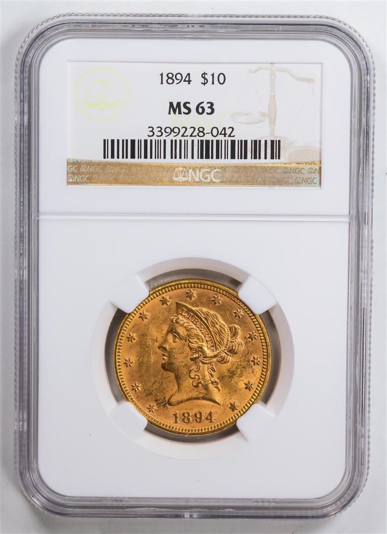 One 1894 $10 Eagle Gold Coin NGC MS63.