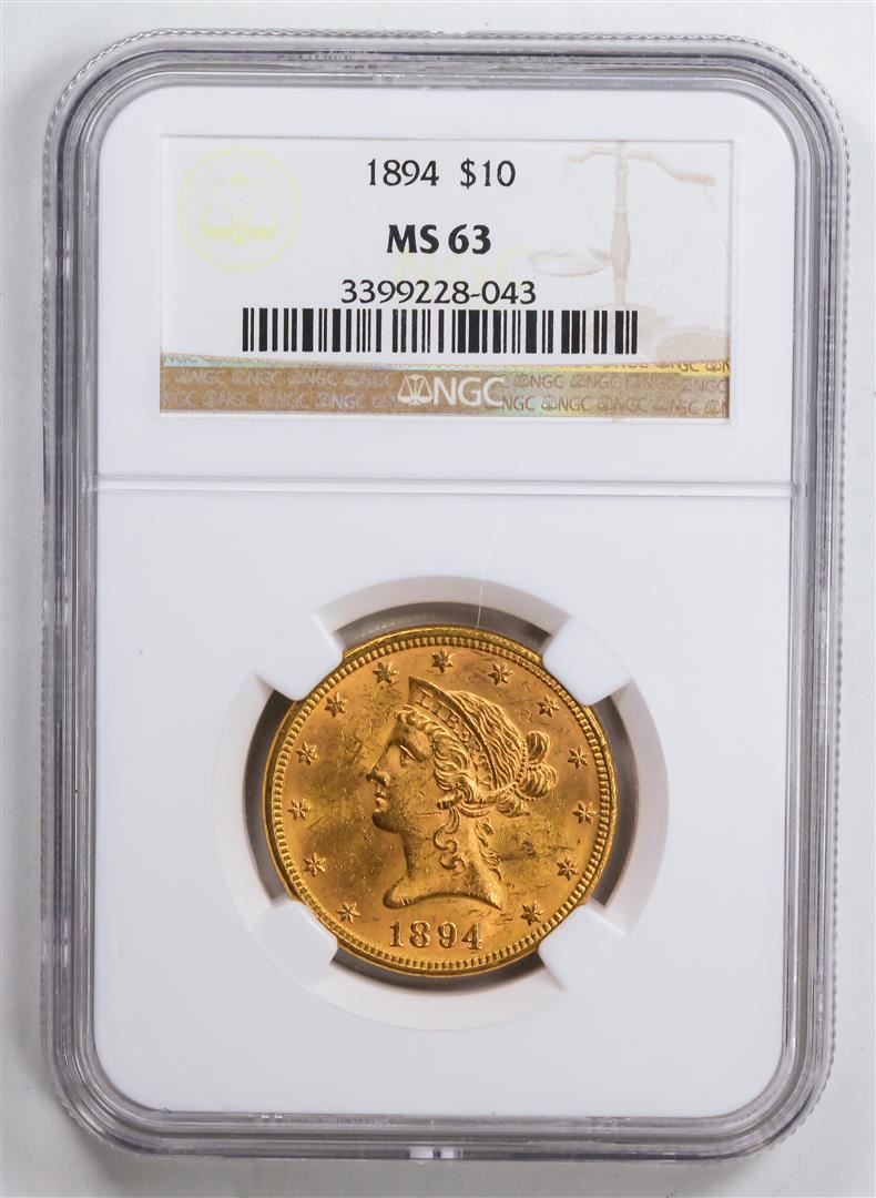 One 1894 $10 Eagle Gold Coin NGC MS63.