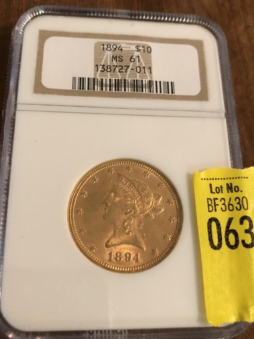 1894 $10 Liberty Gold Coin, Graded MS61 (RL)