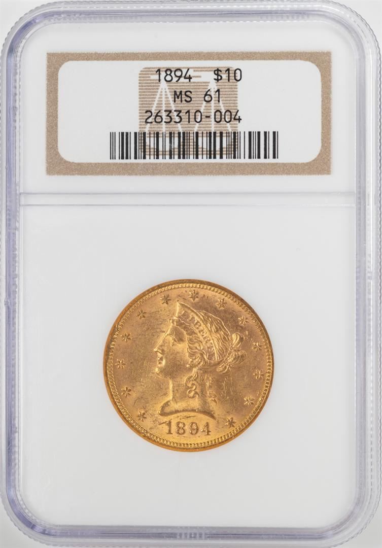 One 1894 $10 Liberty Head Eagle Gold Coin NGC MS61. NGC Certified.