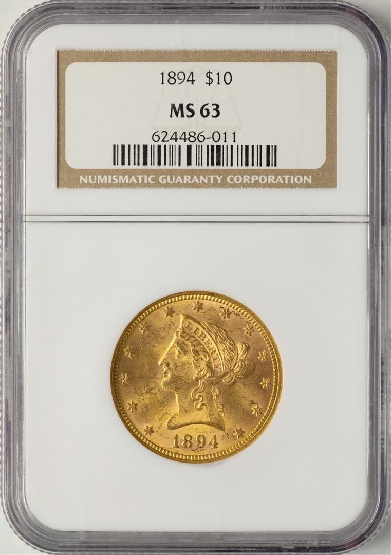 One 1894 $10 Liberty Head Eagle Gold Coin NGC MS63. NGC Certified.
