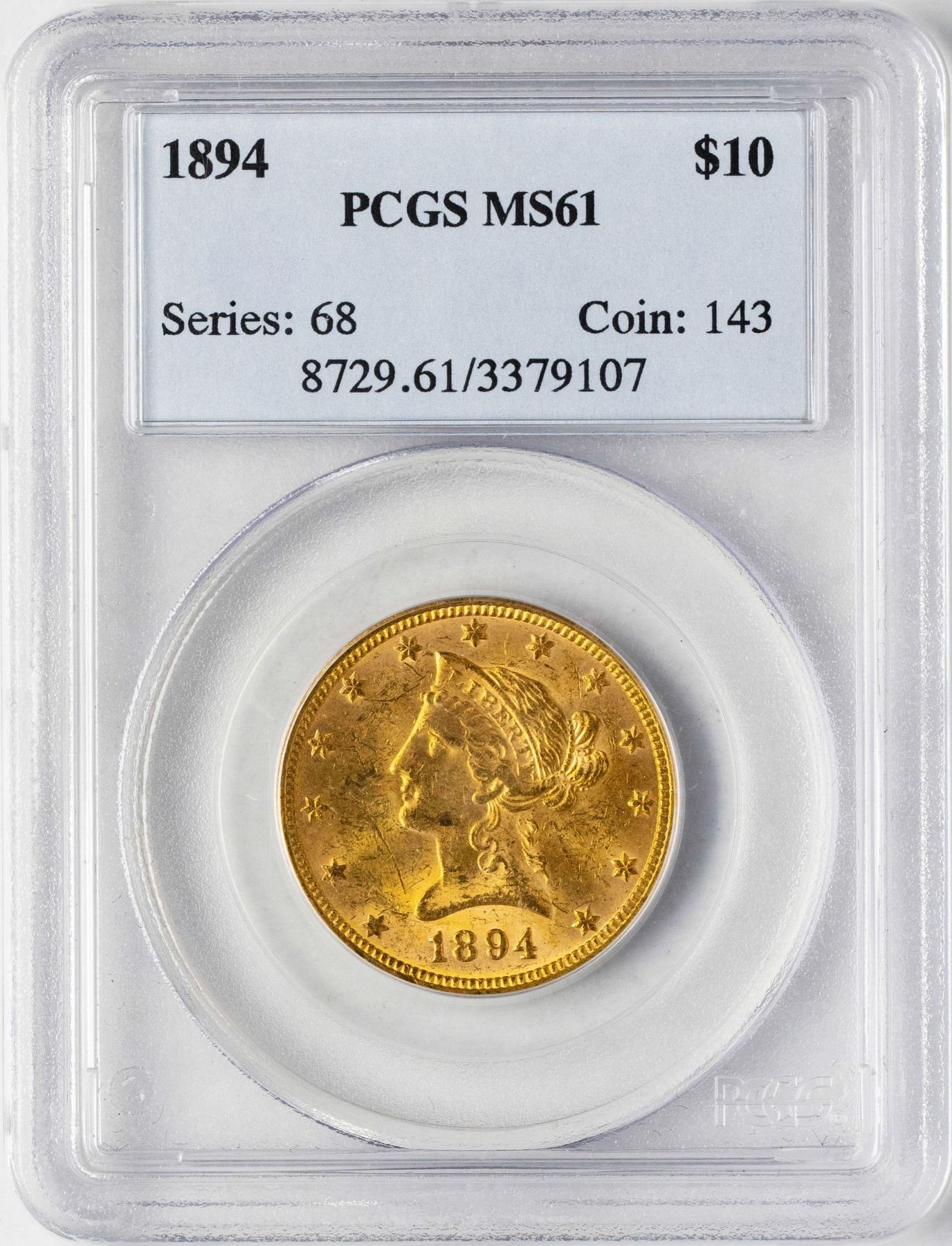 One 1894 $10 Liberty Head Eagle Gold Coin PCGS MS61.