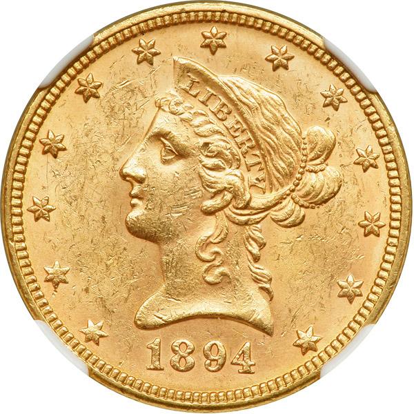 1894 $10 Liberty. NGC graded MS-61. Frosty (PCGS # 8729) .
