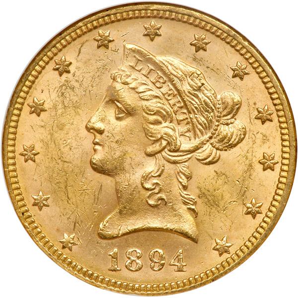 1894 $10 Liberty. NGC graded MS-63. Untoned. Has a normal allottment of bagmarks (PCGS # 8729) .