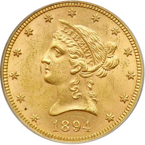 1894 $10 Liberty. PCGS graded MS-62. Well struck and frosty (PCGS # 8729) .