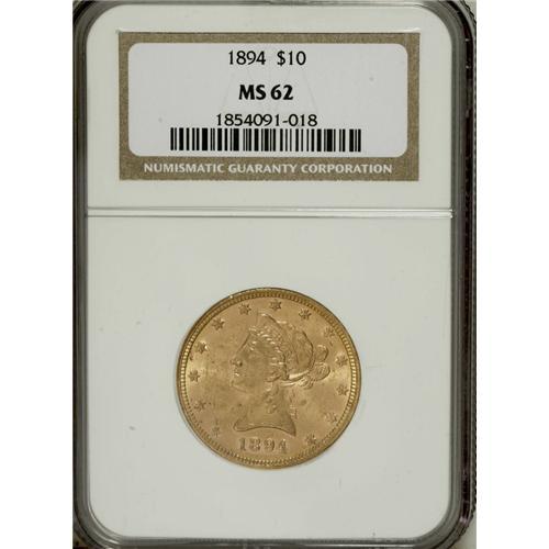 1894 $10 MS62 NGC. NGC Census: (9515/4205). PCGS P