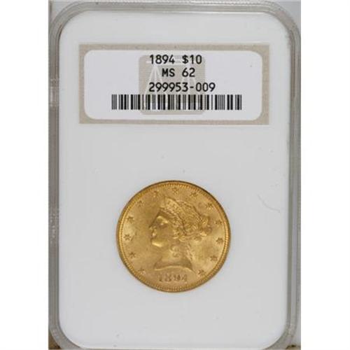 1894 $10 MS62 NGC. NGC Census: (9659/4244). PCGS P