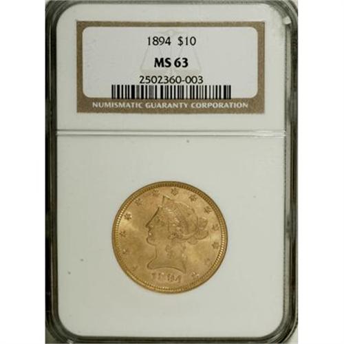1894 $10 MS63 NGC. NGC Census: (3908/348). PCGS Po