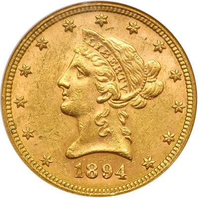1894 $10 NGC graded MS62. NGC graded MS-62. Both sides are lightly toned.