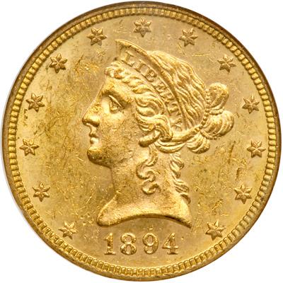 1894 $10. NGC graded MS-62. Lovely golden tones. Flashy lustrous fields. -095.