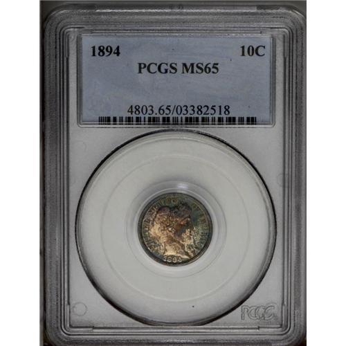 1894 10C MS65 PCGS. An intensely toned example of this 1894[10C] MS65 PCGS.
