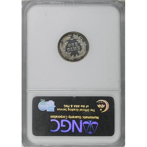 <B>1894 10C PR65 Cameo NGC.</B></I> While the obverse shows layers of rich violet, blue, rose, and champagne patina, both it and the less overtly toned reverse show significant contrast. Strongly detailed with the careful preservation required of a Gem. Census: 5 in 65 Cameo, 27 finer (8/07).<BR><BR><b>Shipping:</b> Coins & Currency (<a target="_blank" href="http://www.heritageauctions.com/common/shipping.php">view shipping information</a>)