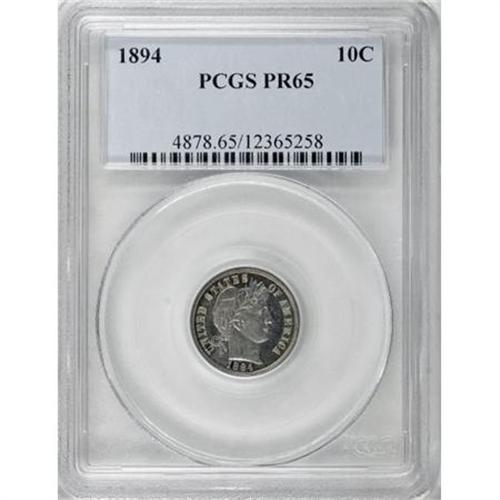 <B>1894 10C PR65 PCGS.</B></I> Gorgeous deep charcoal-gray and electric-blue coloration adorns each side of this crisply struck, well preserved Gem proof. Only the faintest of hairlines can be discerned on either side, and only with the aid of a magnifier. <BR><BR><B>Coin Engraver:</B> Charles E. Barber<BR><BR><b>Shipping:</b> Coins & Currency (<a target="_blank" href="http://www.heritageauctions.com/common/shipping.php">view shipping information</a>)