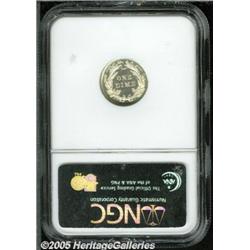 <B>1894 10C PR66 Cameo NGC.</B></I> This gorgeous white Barber dime, with its frosty motifs and mirrored fields, offers outstanding cameo contrast. The design elements are sharply struck up, with excellent definition throughout. The surfaces on both sides have been lovingly preserved, and reveal just a couple of minute marks on Liberty's cheek, which are only mentioned for the sake of accuracy. The elusiveness of this issue is apparent from the population figures. NGC and PCGS combined, as of February 2005, have certified only 19 pieces at this level, with a mere nine examples finer. Population: 10 in 66, 7 finer (2/05).