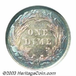 <table><tr><td><TABLE cellSpacing=0 cellPadding=0 width="100%" bgColor=#000000 border=0><TBODY> <TR><TD width="100%"><TABLE cellSpacing=1 cellPadding=3 width="100%" border=0><TBODY><TR><TD width="100%" bgColor=#79735c><FONT face=arial color=#ffffff size=3><B>Description</B> </FONT></TD></TR><TR><TD width="100%" bgColor=#ffffff><FONT face=arial size=2><B>1894 10C PR67 NGC.</B></I> Deep copper-gold and lavender toning with eye-catching flashes of bright blue iridescence at the borders. The closer one looks at this richly toned masterpiece, the more impressive it becomes to the quality conscious, color-oriented collector. Population: 22 in 67, 6 finer (7/03). </FONT></TD></TR></TBODY></TABLE></TD></TR></TBODY></TABLE><BR><A name=PricesRealized></A><TABLE cellSpacing=0 cellPadding=0 width="100%" bgColor=#000000 border=0><TBODY><TR><TD width="100%"><TABLE cellSpacing=1 cellPadding=3 width="100%" border=0><TBODY><TR><TD width="100%" bgColor=#79735c><A name=PR><FONT face=arial color=#ffffff size=3><B>Previous Prices from Heritage Auctions</B> </FONT></A></TD></TR><TR><TD bgColor=#f6f6ed><TABLE cellSpacing=0 cellPadding=0 width="100%" border=1><TBODY><TR><TD align=middle width="33%"><B>Date</B></TD><TD align=middle width="33%"><B>Service</B></TD><TD align=middle width="33%"><B>Price</B></TD></TR><TR bgColor=whitesmoke><TD width="33%"><B>05/31/2003</B></TD><TD width="33%">PCGS</TD><TD width="33%">$2,760.00</TD></TR><TR bgColor=whitesmoke><TD width="33%"><B>04/05/2001</B></TD><TD width="33%">PCGS</TD><TD width="33%">$2,760.00</TD></TR><TR bgColor=whitesmoke><TD width="33%"><B>07/29/1997</B></TD><TD width="33%">PCGS</TD><TD width="33%">$2,860.00</TD></TR><TR bgColor=whitesmoke><TD width="33%"><B>08/01/1999</B></TD><TD width="33%">PCGS</TD><TD width="33%">$3,450.00</TD></TR></TBODY></TABLE></TD></TR><TR><TD bgColor=#ffffff><FONT face=arial size=1 ?>PLEASE NOTE: All prices realized reflect the final hammer price PLUS the buyer's premium in auctions that charge a buyer's premium. Each item has a notation at the top of the listing indicating whether that lot included a buyer's premium. Example: A item that sells with a final hammer price of $100 and a 20% buyer's premium will display with a price realized of $120. All information listed is intended to be as accurate as possible, but errors are possible. Please use this guide carefully and inform us of any inaccuracies. </FONT></TD></TR></TBODY></TABLE></TD></TR></TBODY></TABLE><BR><TABLE cellSpacing=0 cellPadding=0 width="100%" bgColor=#000000 border=0><TBODY><TR><TD width="100%"><TABLE cellSpacing=1 cellPadding=3 width="100%" border=0><TBODY><TR><TD width="100%" bgColor=#79735c colSpan=6><FONT face=arial color=#ffffff size=3><B>Price Guide*</B> </FONT></TD></TR><TR bgColor=#f6f6ed><TD align=middle><B>Grade</B> </TD><TD align=middle><B>Coin World<BR>(Trends)</B> </TD><TD align=middle><B>Numismedia<BR>Retail</B> </TD><TD align=middle><B>Numismedia<BR>Wholesale</B> </TD><TD align=middle><B>Coin<BR>Universe</B> </TD><TD align=middle><B>Heritage<BR>Value Index</B> </TD></TR><TR bgColor=#ffffff><TD align=middle>66</TD><TD align=right>---</TD><TD align=right>---</TD><TD align=right>$1,875.00</TD><TD align=right>$2,100.00</TD><TD align=right>$1,385.33</TD></TR><TR style="FONT-WEIGHT: bold" bgColor=#cccfdd><TD align=middle>67</TD><TD align=right>---</TD><TD align=right>---</TD><TD align=right>$3,450.00</TD><TD align=right>$4,600.00</TD><TD align=right>$2,810.00</TD></TR><TR bgColor=#ffffff><TD align=middle>68</TD><TD align=right>---</TD><TD align=right>---</TD><TD align=right>$6,750.00</TD><TD align=right>---</TD><TD align=right>---</TD></TR><TR bgColor=#ffffff><TD colSpan=6><FONT size=1>*All information listed is intended to be as accurate as possible, but errors are possible. No item may be returned or refused based on this information which is provided as a service to our customers. You should contact each pricing source directly to determine the accuracy of this information. </FONT></TD></TR></TBODY></TABLE></TD></TR></TBODY></TABLE><BR><TABLE cellSpacing=0 cellPadding=0 width="100%" bgColor=#000000 border=0><TBODY><TR><TD width="100%"><TABLE cellSpacing=1 cellPadding=3 width="100%" border=0><TBODY><TR><TD width="100%" bgColor=#79735c><FONT face=arial color=#ffffff size=3><B>Population Guide</B> </FONT></TD></TR><TR bgColor=#ffffff><TD align=middle><!-- Begin Output of Population Grid--><TABLE cellSpacing=0 cellPadding=0 width="100%" border=0><TBODY><TR><TD vAlign=center><TABLE cellSpacing=0 width="100%" border=1 cellsadding="3"><TBODY><TR><TD vAlign=center><TABLE cellSpacing=0 cellPadding=3 width="100%" border=1><TBODY><TR><TD vAlign=center align=middle bgColor=#f0f1e8 colSpan=2 <CENTER><FONT face=Arial size=2><B>PCGS Pop </B></FONT><CENTER></CENTER></TD><TD vAlign=center align=middle bgColor=#f0f1e8 colSpan=2><CENTER><FONT face=Arial size=2><B>NGC Pop</B></CENTER></FONT></TD></TR><TR><TD vAlign=center><FONT face=Arial size=2>(67)</FONT> </TD><TD vAlign=center align=right><FONT face=Arial size=2>18</FONT> </TD><TD vAlign=center><FONT face=Arial size=2>(67)</FONT> </TD><TD vAlign=center align=right><FONT face=Arial size=2>22</FONT> </TD></TR><TR><TD vAlign=center><FONT face=Arial size=2>(>67)</FONT> </TD><TD vAlign=center align=right><FONT face=Arial size=2>0</FONT> </TD><TD vAlign=center><FONT face=Arial size=2>(>67)</FONT> </TD><TD vAlign=center align=right><FONT face=Arial size=2>6</FONT> </TD></TR></TBODY></TABLE></TD></TR></TBODY></TABLE></TD></TR></TBODY></TABLE><!-- End Output of Population Grid--></TD></TR></TBODY></TABLE></TD></TR></TBODY></TABLE><BR><TABLE cellSpacing=0 cellPadding=0 width="100%" bgColor=#000000 border=0><TBODY><TR> Important notice: Heritage usually auctions material at the rate of 200-250 lots per hour. On some occasions eBay Live bid software or the Internet may not be able to keep up with the pace of the auction. We recommend placing a realistic absentee bid now as insurance to avoid disappointment. Occasionally the auctionee