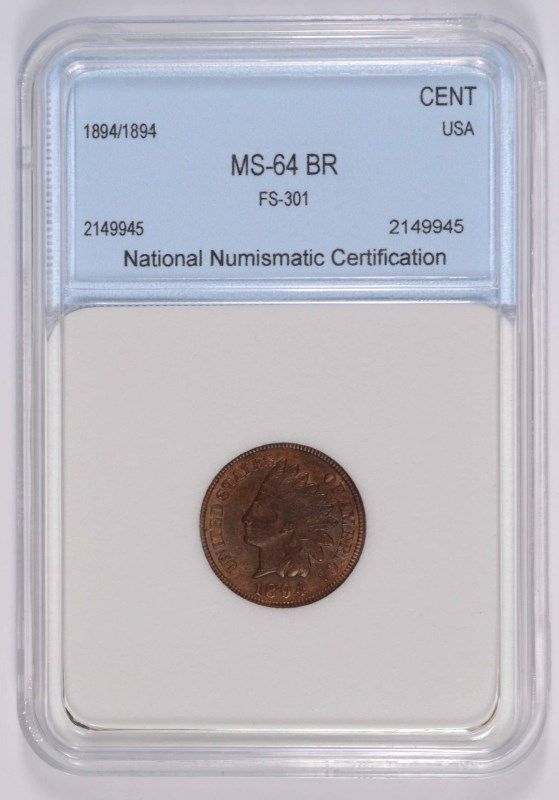 1894/1894 INDIAN CENT FS-301 NNC MS-64 BR SCARCE VARIETY RED BOOK $1,150 IN 63,