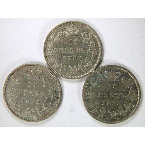 1894 Obverse 6, 1898 Obverse 6 and 1899 Small 99. Three pale toned pieces, all VF, the 1894 with minor scratches