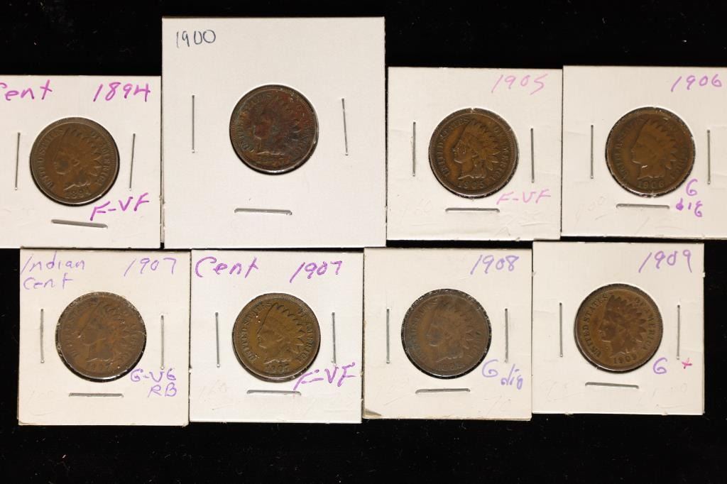 1894, 1900, 1905, 06, 2-07, 08 & 09 INDIAN HEADS