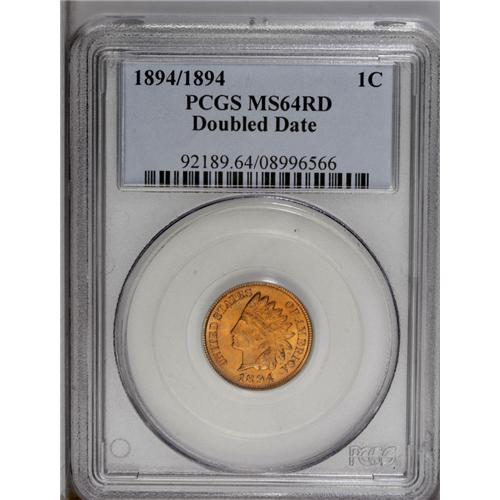 1894 1C Doubled Date MS64 Red PCGS. Breen-2024, Snow-1