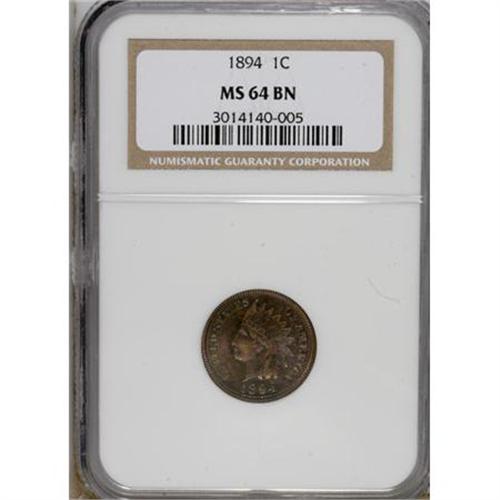 <B>1894 1C MS64 Brown NGC.</B></I> NGC Census: (60/31). PCGS Population (18/6). Mintage: 16,752,132. Numismedia Wsl. Price for NGC/PCGS coin in MS64: $140. (#2187)<BR><BR><b>Shipping:</b> Coins & Currency (<a target="_blank" href="http://www.heritageauctions.com/common/shipping.php">view shipping information</a>)