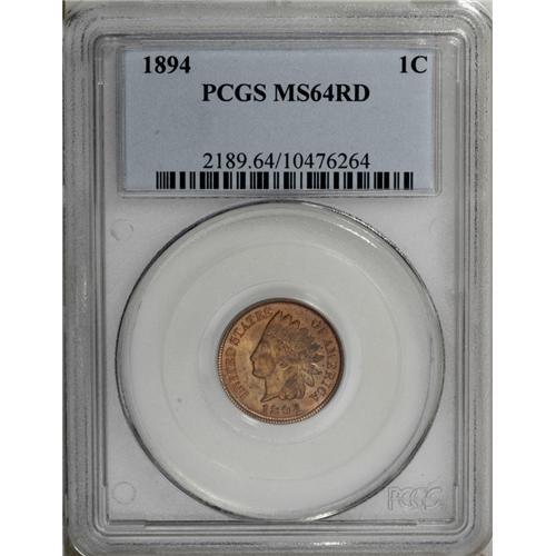 <B>1894 1C MS64 Red PCGS.</B></I> A solidly struck example with rich reddish-orange surfaces. Scattered marks and small carbon flecks on each side account for the grade.<BR><BR><b>Shipping:</b> Coin/Currency (<a target="_blank" href="http://www.heritageauctions.com/common/shipping.php">view shipping information</a>)