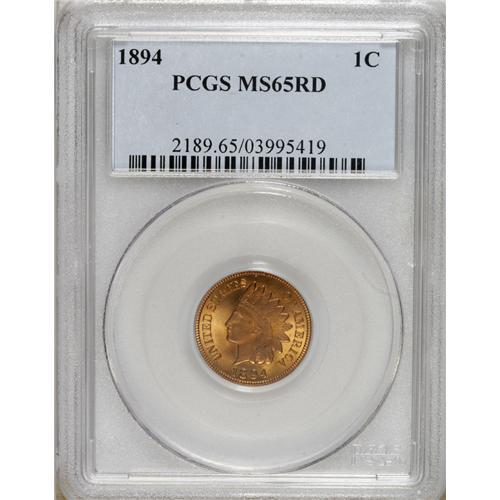 <B>1894 1C MS65 Red PCGS.</B></I> A campfire-red example that boasts booming luster and impressively undisturbed fields. Well struck aside from the right border of the wreath. The cheek has a horizontal mark. Population: 59 in 65 Red, 22 finer (2/07).<BR><BR><b>Shipping:</b> Coins & Currency (<a target="_blank" href="http://www.heritageauctions.com/common/shipping.php">view shipping information</a>)