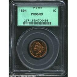 1894 1C PR65 Red PCGS. A well struck Gem with radiant gold and olive color. A few miniscule carbon f