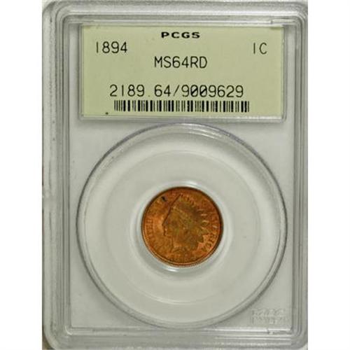 <B>1894 1C MS64 Red PCGS.</B></I> PCGS Population (100/84). NGC Census: (43/38). Mintage: 16,752,132. Numismedia Wsl. Price for NGC/PCGS coin in MS64: $360. (#2189)<BR><BR><B>Coin Engraver:</B> James B. Longacre<BR><BR><b>Shipping:</b> Coins & Currency (<a target="_blank" href="http://www.heritageauctions.com/common/shipping.php">view shipping information</a>)