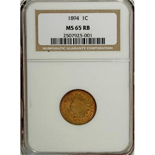 <B>1894 1C MS65 Red and Brown NGC.</B></I> NGC Census: (58/3). PCGS Population (14/1). Mintage: 16,752,132. Numismedia Wsl. Price for NGC/PCGS coin in MS65: $280. (#2188)<BR><BR><B>Coin Engraver:</B> James B. Longacre<BR><BR><b>Shipping:</b> Coins & Currency (<a target="_blank" href="http://www.heritageauctions.com/common/shipping.php">view shipping information</a>)
