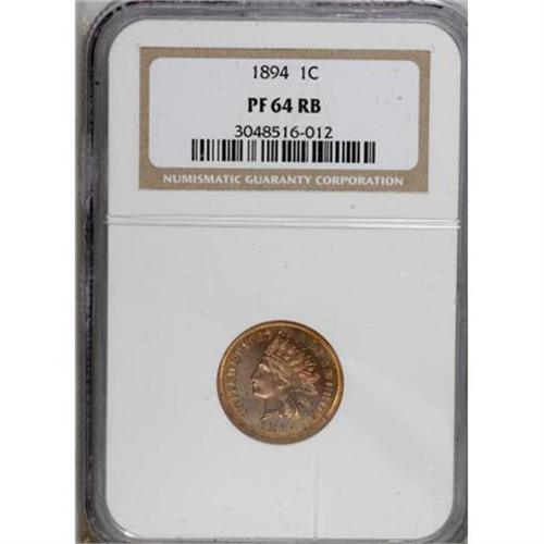 <B>1894 1C PR64 Red and Brown NGC.</B></I> NGC Census: (56/44). PCGS Population (112/18). Mintage: 2,632. Numismedia Wsl. Price for NGC/PCGS coin in PR64: $304. (#2370)<BR><BR><B>Coin Engraver:</B> James B. Longacre<BR><BR><b>Shipping:</b> Coins & Currency (<a target="_blank" href="http://www.heritageauctions.com/common/shipping.php">view shipping information</a>)