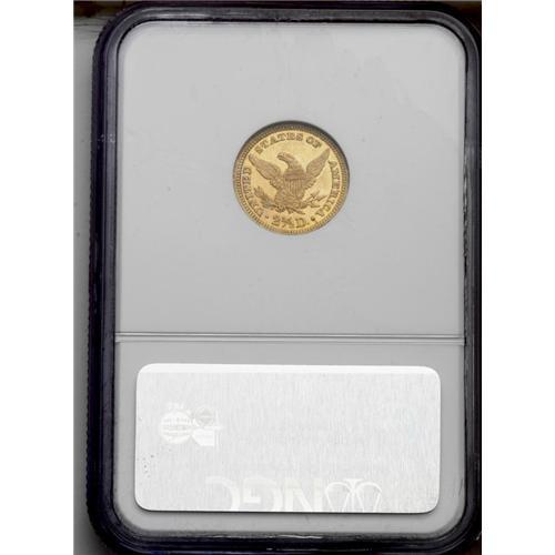 <B>1894<$2 1/2> MS62 NGC.</B></I> The lustrous fields are a deep reddish-yellow, and the well struck devices exhibit slight frosting. Abrasions in the field and on the devices preclude a higher grade.