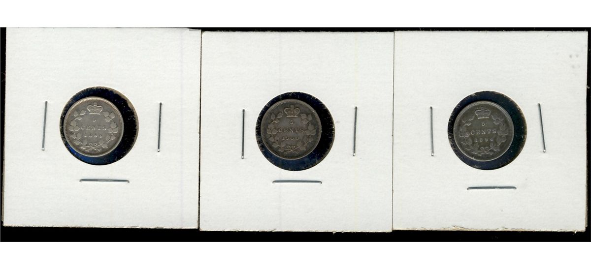 1894(2) 5¢ & 1900 Rd 0. Lot of 3 coins Abt VF to VF+