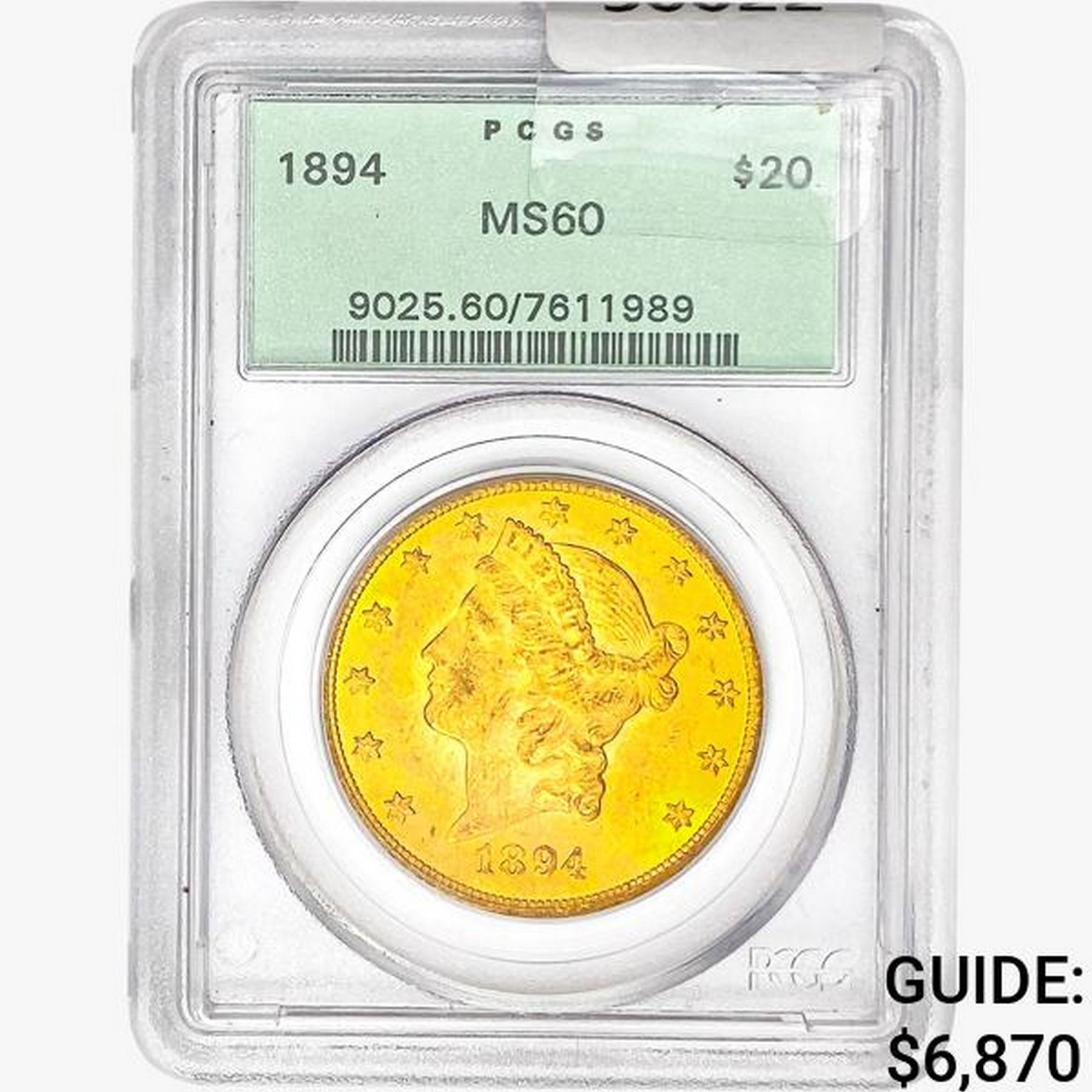 1894 $20 Gold Double Eagle PCGS MS60