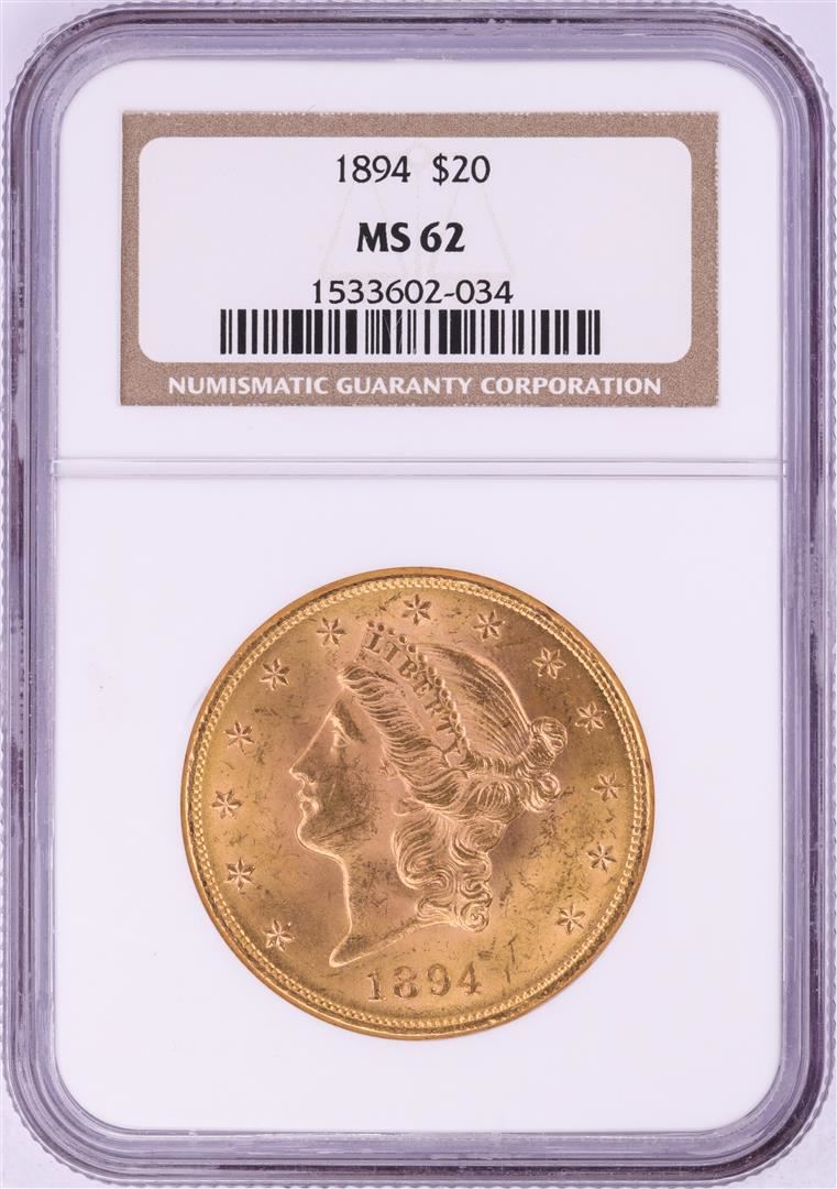 One 1894 $20 Liberty Head Double Eagle Gold Coin NGC MS62. NGC Certified.