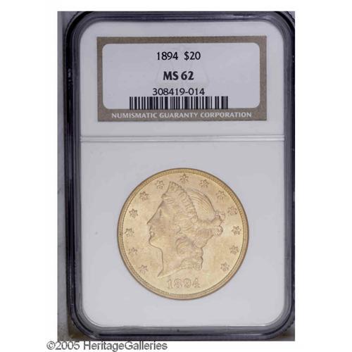 1894 $20 MS62 NGC. The design features are well struck 1894[$20] MS62 NGC.