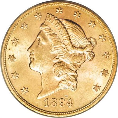 <B>1894 $20 MS64 PCGS.</B></I> Radiantly lustrous with attractive khaki-orange coloration that has a faintly coppery tint, this near-Gem also exhibits crisply struck devices and carefully preserved surfaces. Surface marks are relatively minor for the grade. According to Garrett and Guth (2006): "Large numbers were struck, and many were sent overseas. Examples are still being returned to the United States; nonetheless, the issue still remains elusive in choice or gem condition." Actually, Gems are rare, and PCGS has only graded a single coin at MS65, with none finer (1/08).<BR><BR><B>Coin Engraver:</B> James B. Longacre<BR><BR><b>Shipping:</b> Coins & Currency (<a target="_blank" href="http://www.heritageauctions.com/common/shipping.php">view shipping information</a>)