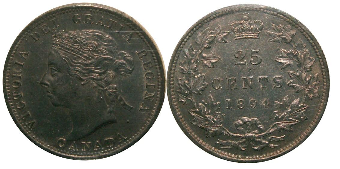 1894 25¢ ICCS MS64. Choice key date example with full lustre
