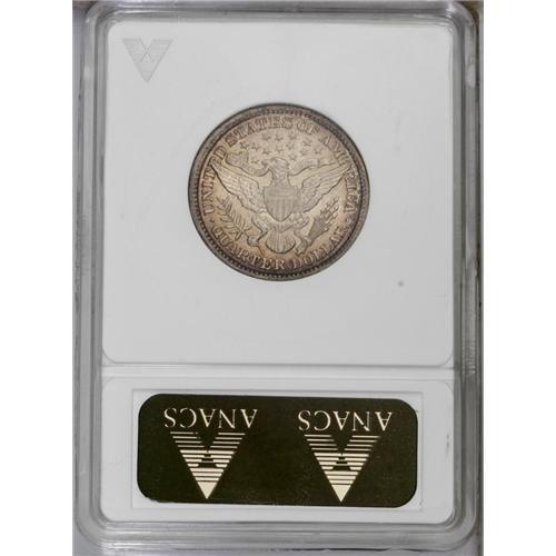 <B>1894<25C> MS64 ANACS.</B></I> A bold striking with intense, satiny luster overlaid in golden-orange and lilac toning that tends to deepen at the margins. Most attractive for a less-than-Gem Barber quarter.