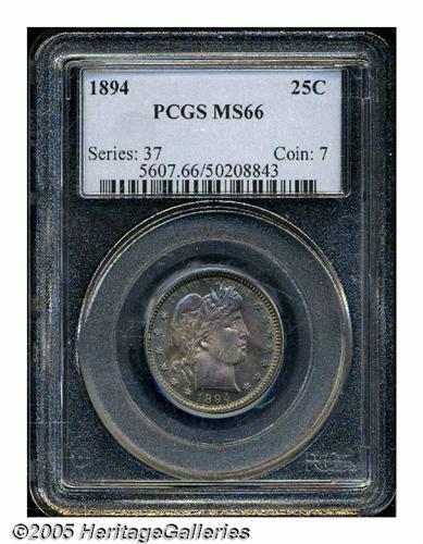 1894 25C MS66 PCGS. A beautiful, wholly original